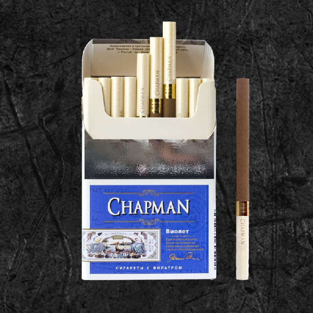 • Стильная упаковка: дизайн пачки сигарет Chapman выполнен в элегантной и минималистичной манере, идеально дополняющей образ современного человека.
